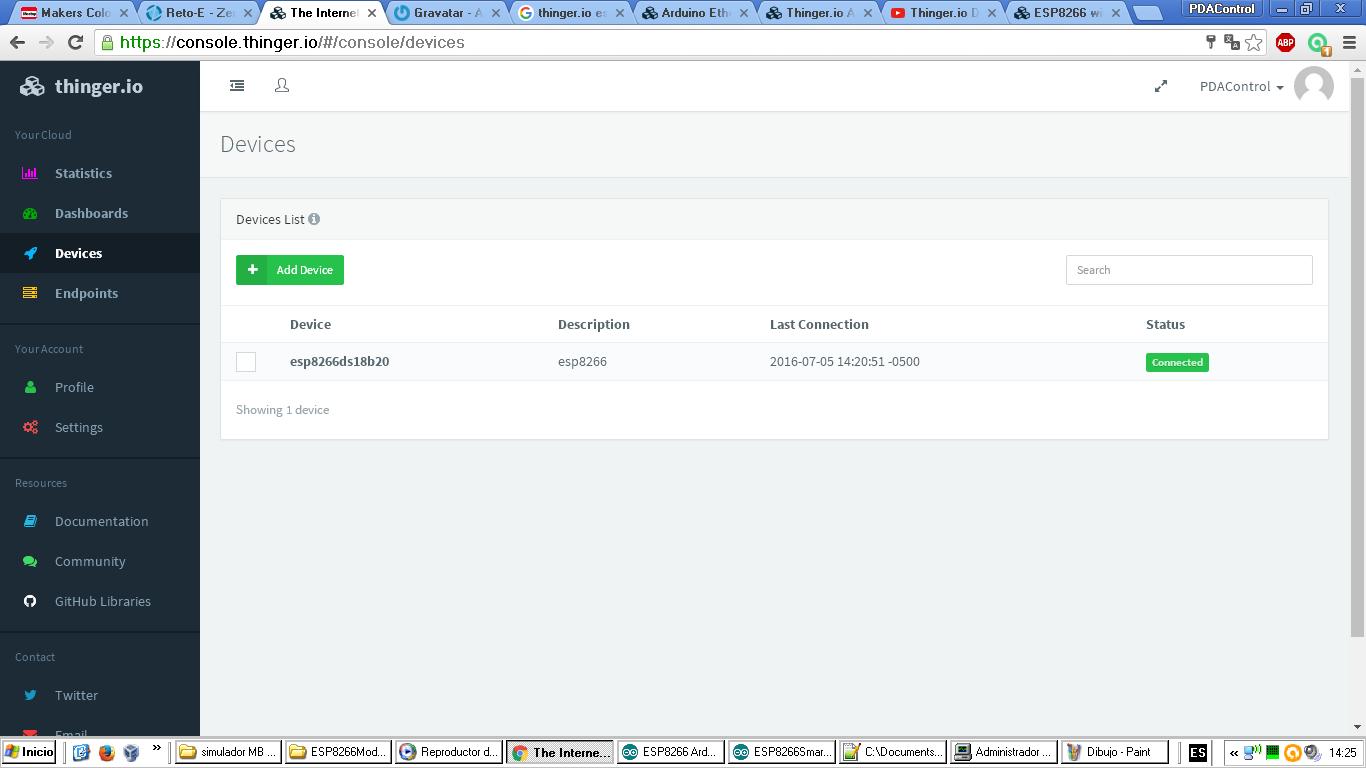 This time a test is carried out with the Thinger.io platform, using a 01 ESP8266 be conducted remotely control a diode led directly from the web platform.